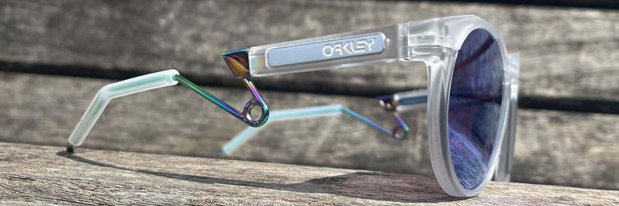 Formato clássico com muito estilo e proteção para seus olhos é com o Óculos Oakley HSTN Metal Matte Clear/Prizm Violet.