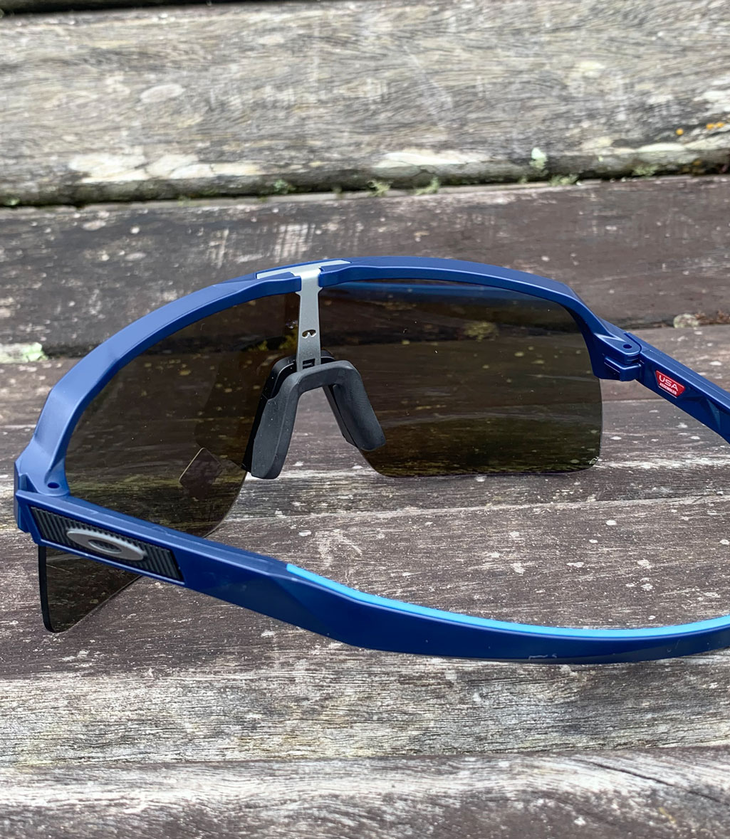 Óculos Oakley Sutro Lite possui construção da ponta das hastes e nosepads (narizeiras) com tecnologia Unobtainium®- muito mais macia e aderente junto ao nariz e parte posterior da cabeça, mesmo com uso por cima das cintas jugulares do capacete de ciclismo, mantendo a segurança nas trepidações mais elevadas e sob altas condições de umidade.