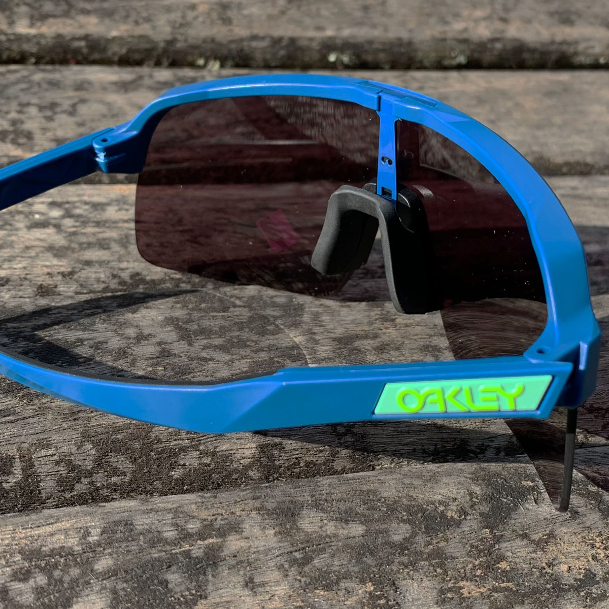 Óculos Oakley Sutro possui construção da ponta das hastes e nosepads (narizeiras) com tecnologia Unobtainium®- muito mais macia e aderente junto ao nariz e parte posterior da cabeça, mesmo com uso por cima das cintas jugulares do capacete de ciclismo, mantendo a segurança nas trepidações mais elevadas e sob altas condições de umidade.