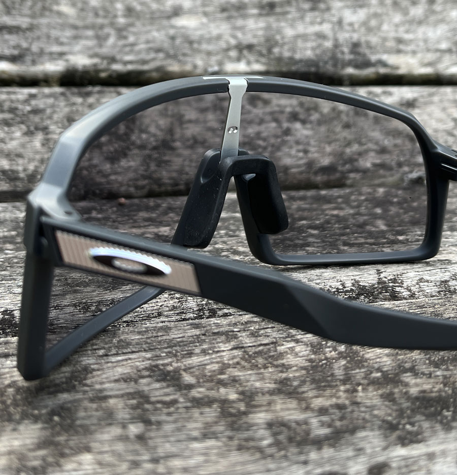 Óculos Oakley Sutro possui construção da ponta das hastes e nosepads (narizeiras) com tecnologia Unobtainium®- muito mais macia e aderente junto ao nariz e parte posterior da cabeça, mesmo com uso por cima das cintas jugulares do capacete de ciclismo, mantendo a segurança nas trepidações mais elevadas e sob altas condições de umidade.