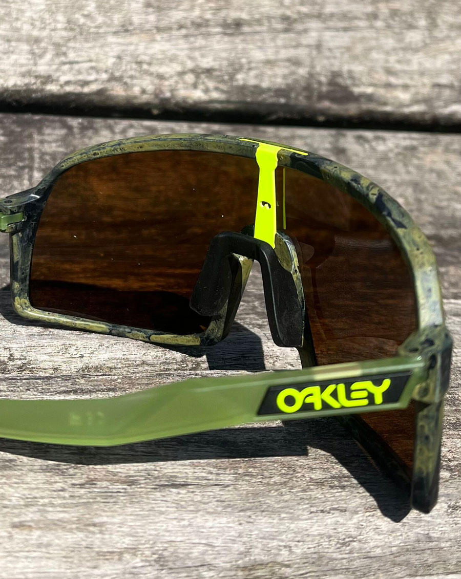 Óculos Oakley Sutro S Chrysalis Fern Swirl/Prizm Bronze possui construção da ponta das hastes e nosepads (narizeiras) com tecnologia Unobtainium®- muito mais macia e aderente junto ao nariz e parte posterior da cabeça, mesmo com uso por cima das cintas jugulares do capacete de ciclismo, mantendo a segurança nas trepidações mais elevadas e sob altas condições de umidade.