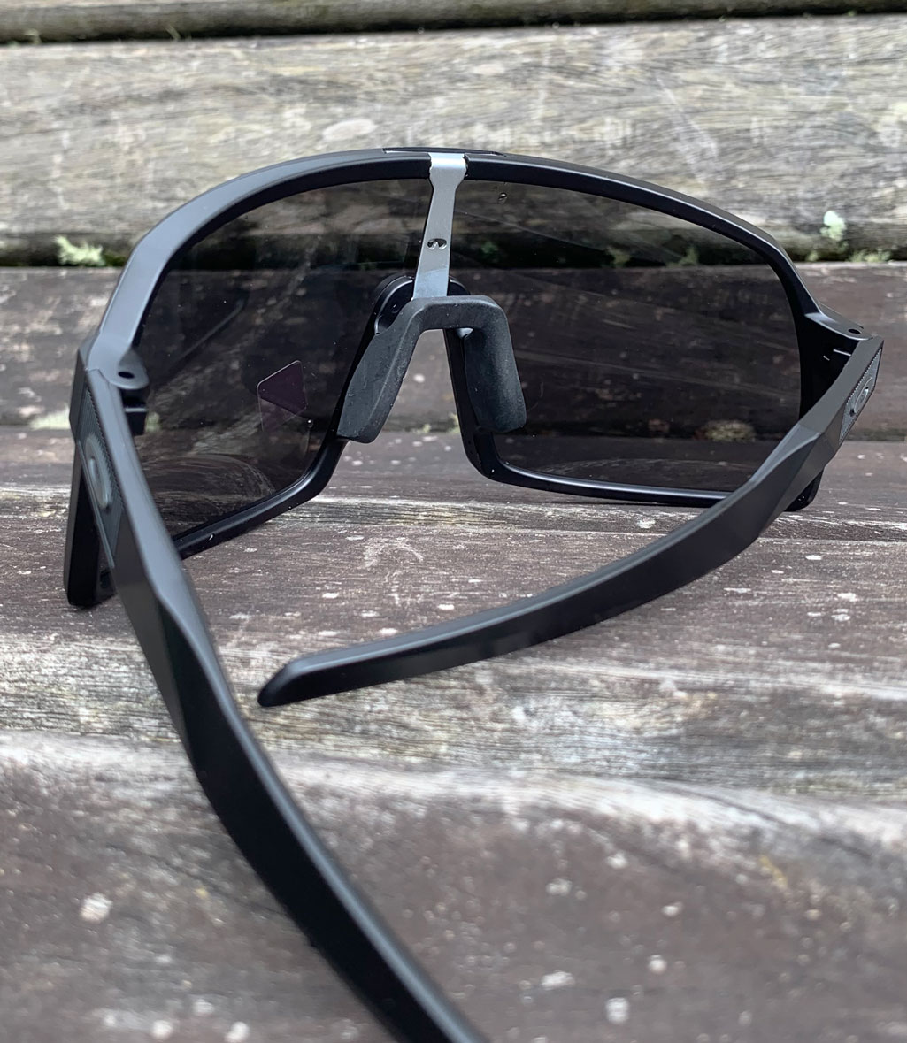 Óculos Oakley Sutro S possui construção da ponta das hastes e nosepads (narizeiras) com tecnologia Unobtainium®- muito mais macia e aderente junto ao nariz e parte posterior da cabeça, mesmo com uso por cima das cintas jugulares do capacete de ciclismo, mantendo a segurança nas trepidações mais elevadas e sob altas condições de umidade.