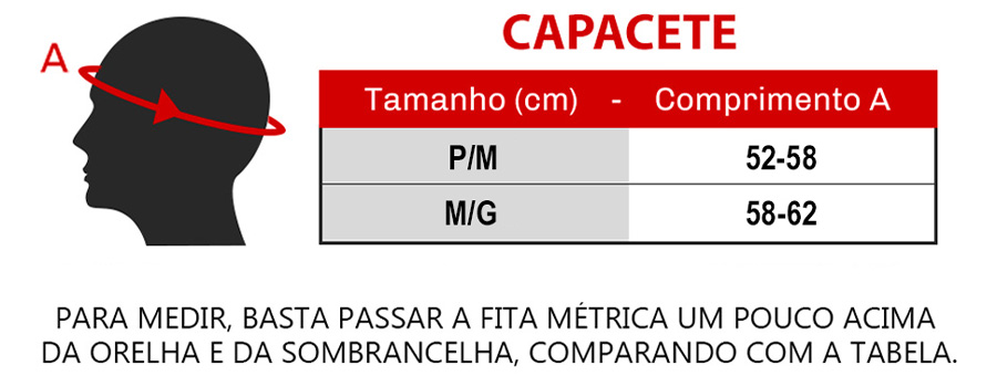 Confira as medidas do Capacete Kali Phenom Orbit:
