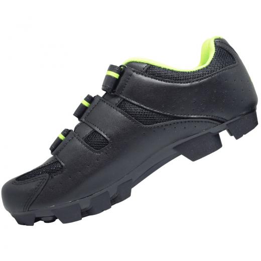 O solado em borracha, conta com pontos mais rígidos na entre sola, afim de favorecer a dissipação da energia aos pedais da bike.