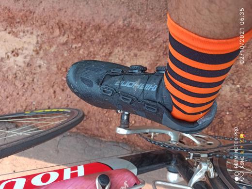 Sapatilha leve prática para calçar gostei bastante, muito boa mesmo, apenas um porém, o cabedal traseiro ficou um pouco Largo, mas não incomodou no pedal.