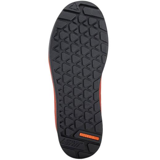 Com solado construído com diferentes zonas, a Sapatilha Leatt 2.0 Flat possui composição emborrachada e tecnologia RideGrip®, que proporciona ótima aderência sob os pedais da bicicleta, além de possuir sistema anti compressão para maior conforto ao pedalar.