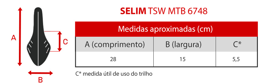 Fique por dentro das medidas do Selim TSW MTB 6748: